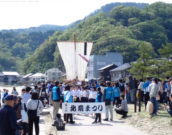 毎年5月3日に開催され、北前船パレードやステージイベント、海町マーケットなどで賑わう地域のお祭りです。